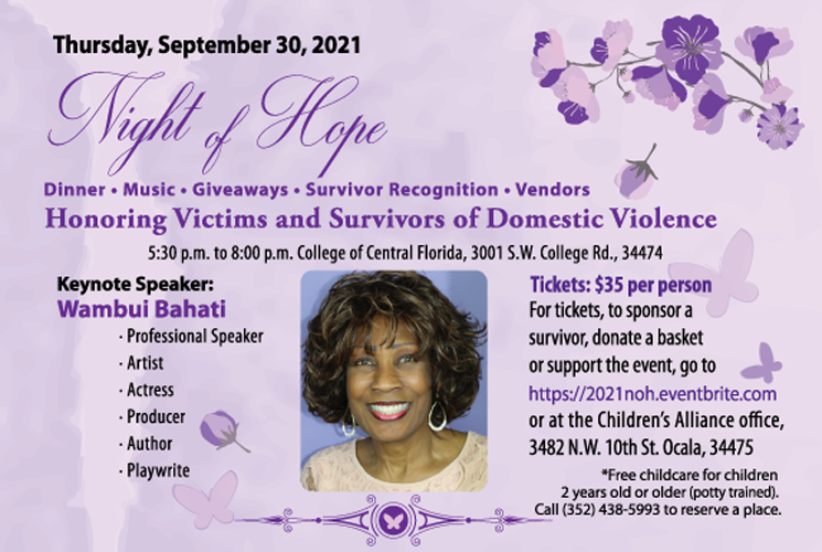 The Marion County Children’s Alliance Family Violence Prevention Workgroup is pleased to present its annual Night of Hope on Thursday, September 30, 2021 honoring Victims and Survivors of Domestic Violence as well as advocates for the amazing work they do. We are now accepting nominations for the 2021 CONQUEROR AWARD designed to recognize two outstanding survivors in our community that have overcome challenges and flourished despite their circumstances.